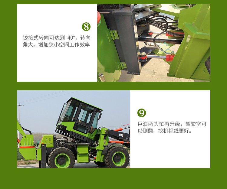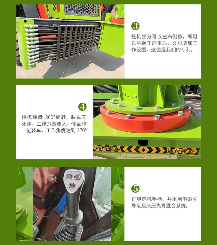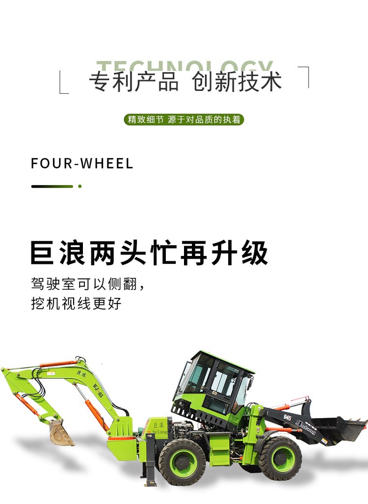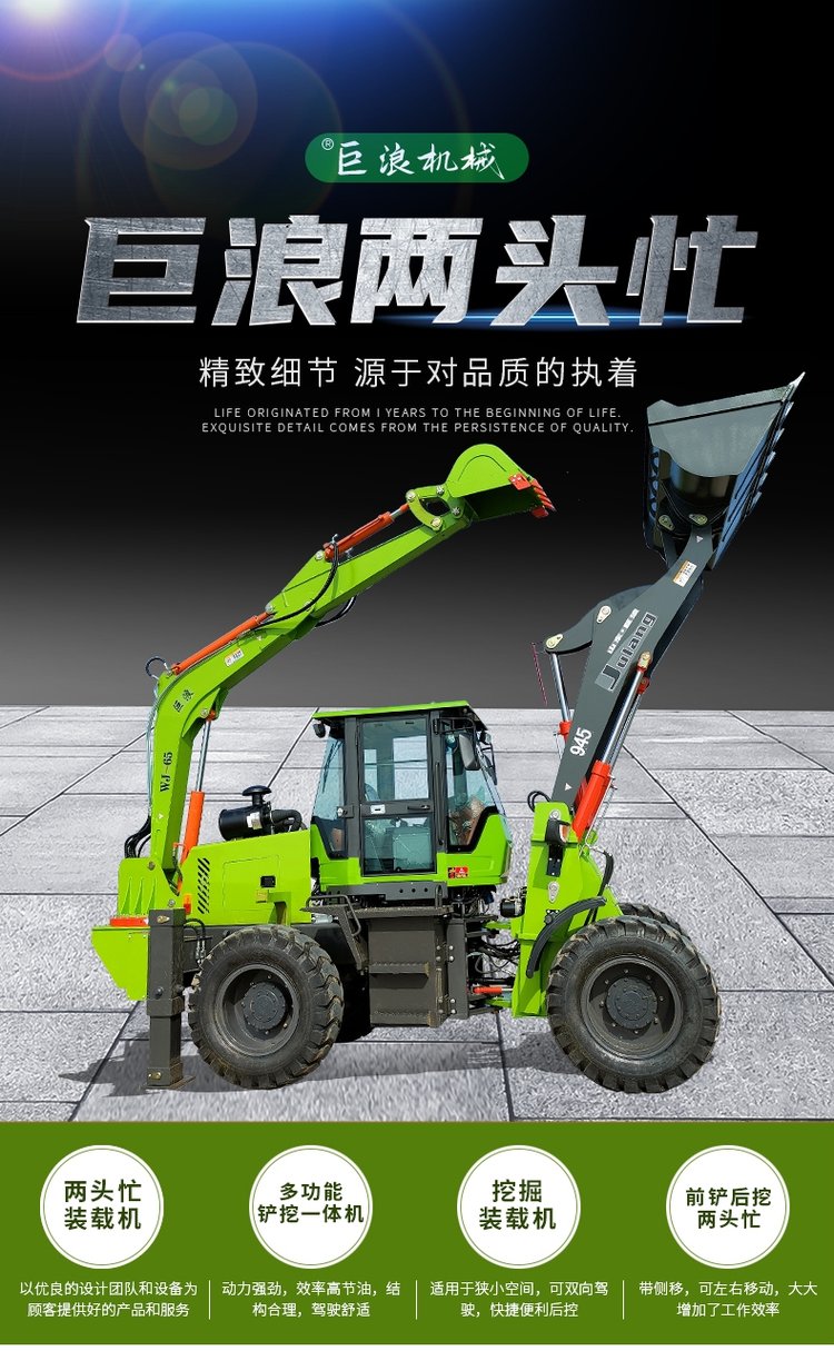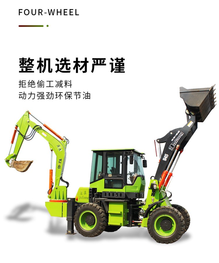 連接復(fù)合動(dòng)作一拖二操作手柄,簡(jiǎn)介易操作由于它具有共同的結(jié)構(gòu),前端是裝載設(shè)備,后端為發(fā)掘設(shè)備。在施工時(shí),操作手只需求翻滾一下座椅,就可以結(jié)束從裝載機(jī)到發(fā)掘機(jī)的改動(dòng)。鏟挖一體機(jī)首要用于城市和村莊的公路制作及維護(hù)、電纜鋪設(shè)、電力和機(jī)場(chǎng)工程、市政制作、農(nóng)田水利制作、村莊住宅制作、開山取石以及各種小型建筑隊(duì)所從事的各種建筑施工工程?!皟深^忙”歸于小型多功能工程機(jī)械的一種,一般在大工程結(jié)束后的小工程中運(yùn)用。它可配多種作業(yè)設(shè)備及輔具,進(jìn)行發(fā)掘、鏟裝、路面破碎、平整場(chǎng)所、開挖水溝、鋪設(shè)管道等多種作業(yè)。